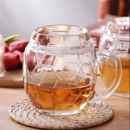 Made in Italy Borgonovo Soccer Ball Beer Mug – Set of 2 features a fun football-inspired textured design with sturdy clear glass construction, perfect for beer, soft drinks, and game nights. Durable and comfortable to hold, these mugs add sporty charm, novelty appeal, and lively energy to parties, gifting, and home bars.