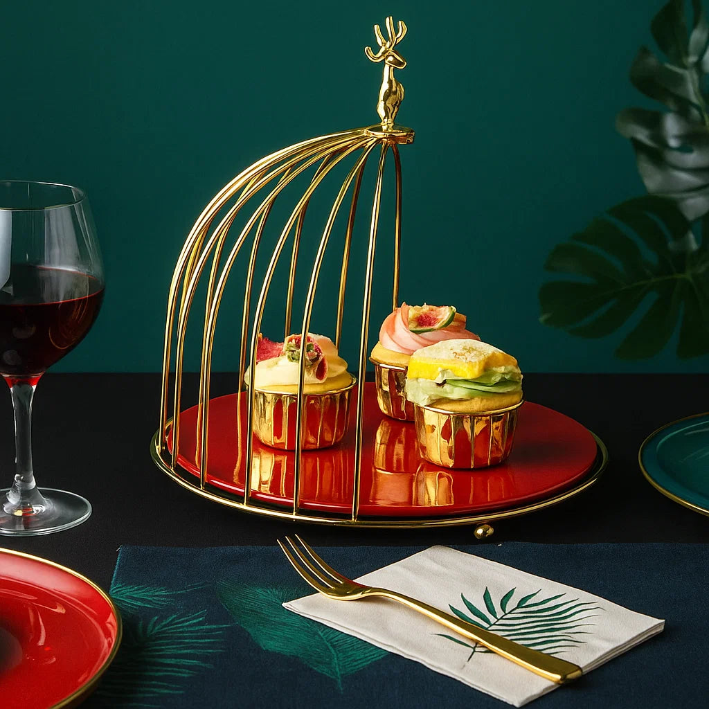 The CORRAL ONE-TIER STAND is a metal stand with a ceramic plate that comes in two color options: red and green. It has a diameter of 25.5 cm and a height of 27.5 cm, making it an attractive and functional piece for displaying and serving food. The combination of metal and ceramic materials offers both stability and style.