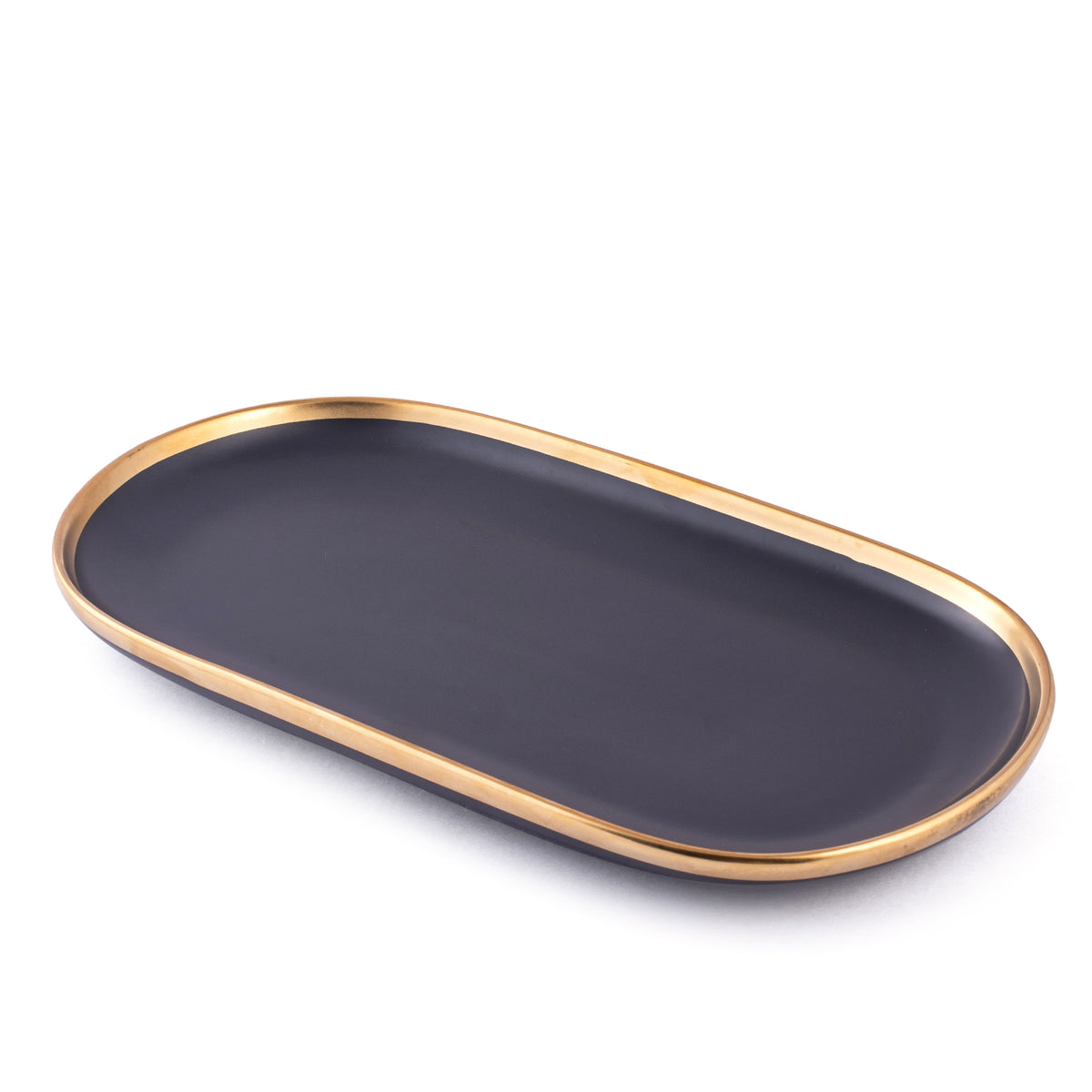 Add a touch of style and sophistication to your dining moments with this exquisite Nore Plates & Bowls. Highlighting royal black tone with a golden rim in a detailed way, these ceramic pieces are handcrafted with utter finesse.