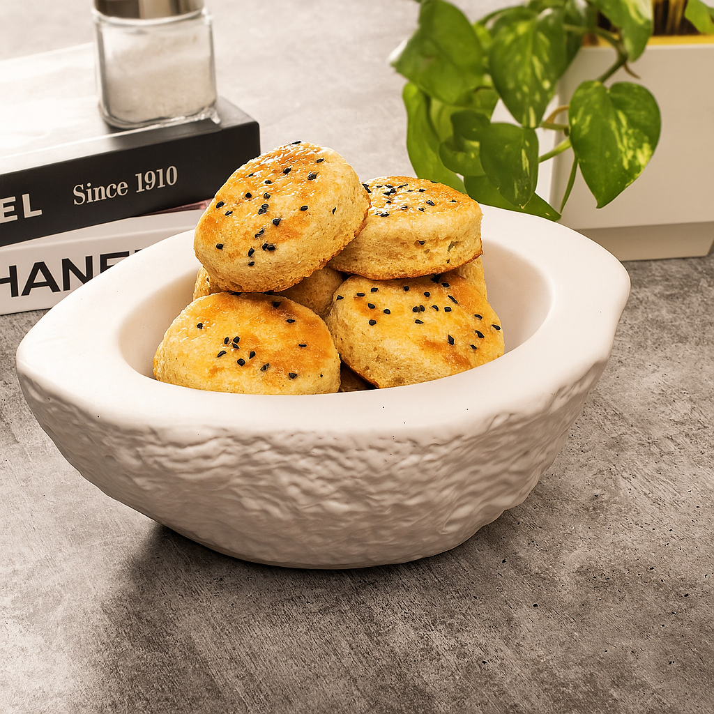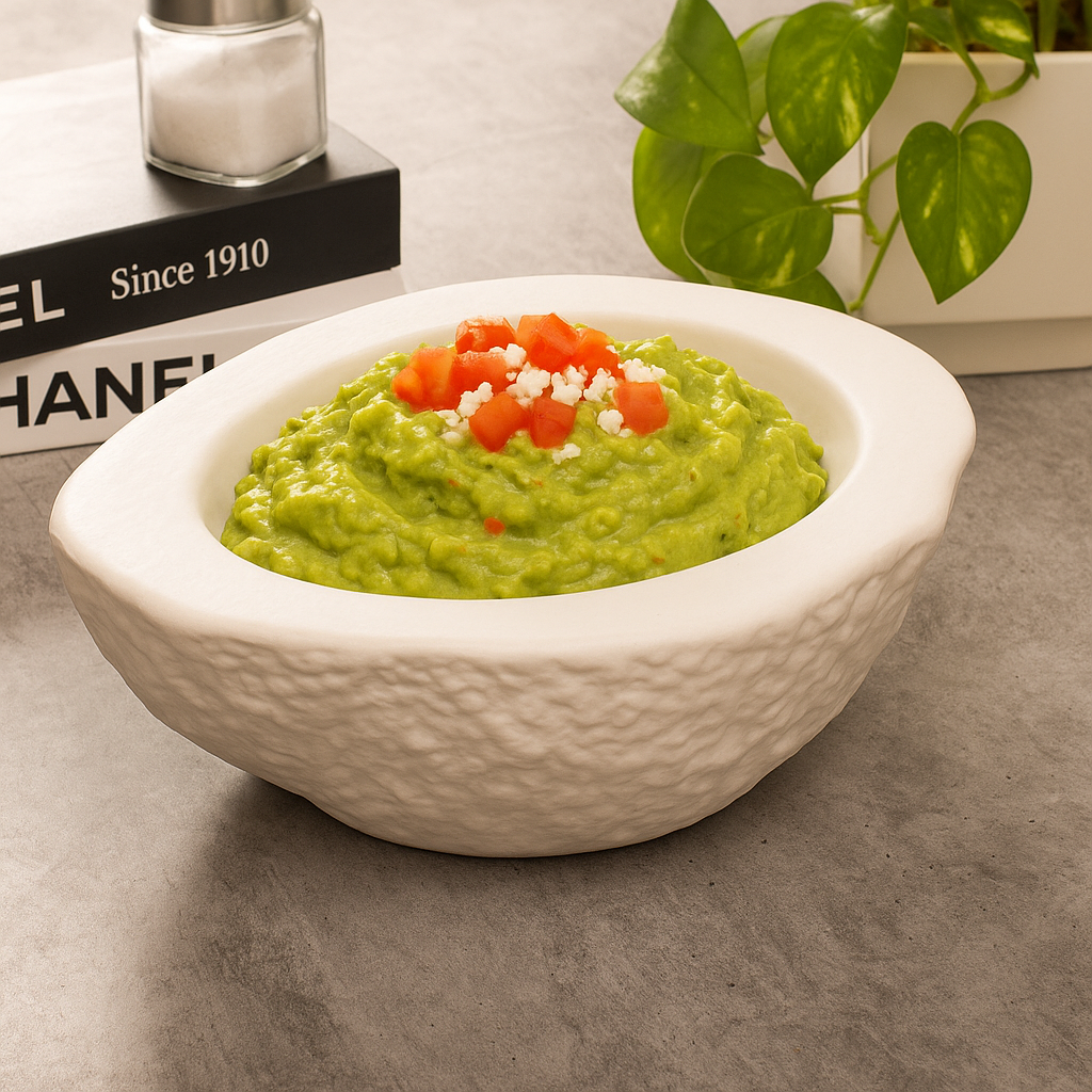 The DipCado Bowl features an avocado shape crafted from fine ceramic, ideal for serving soup, salad, or small bites. Its unique design adds a touch of elegance to any dining experience.