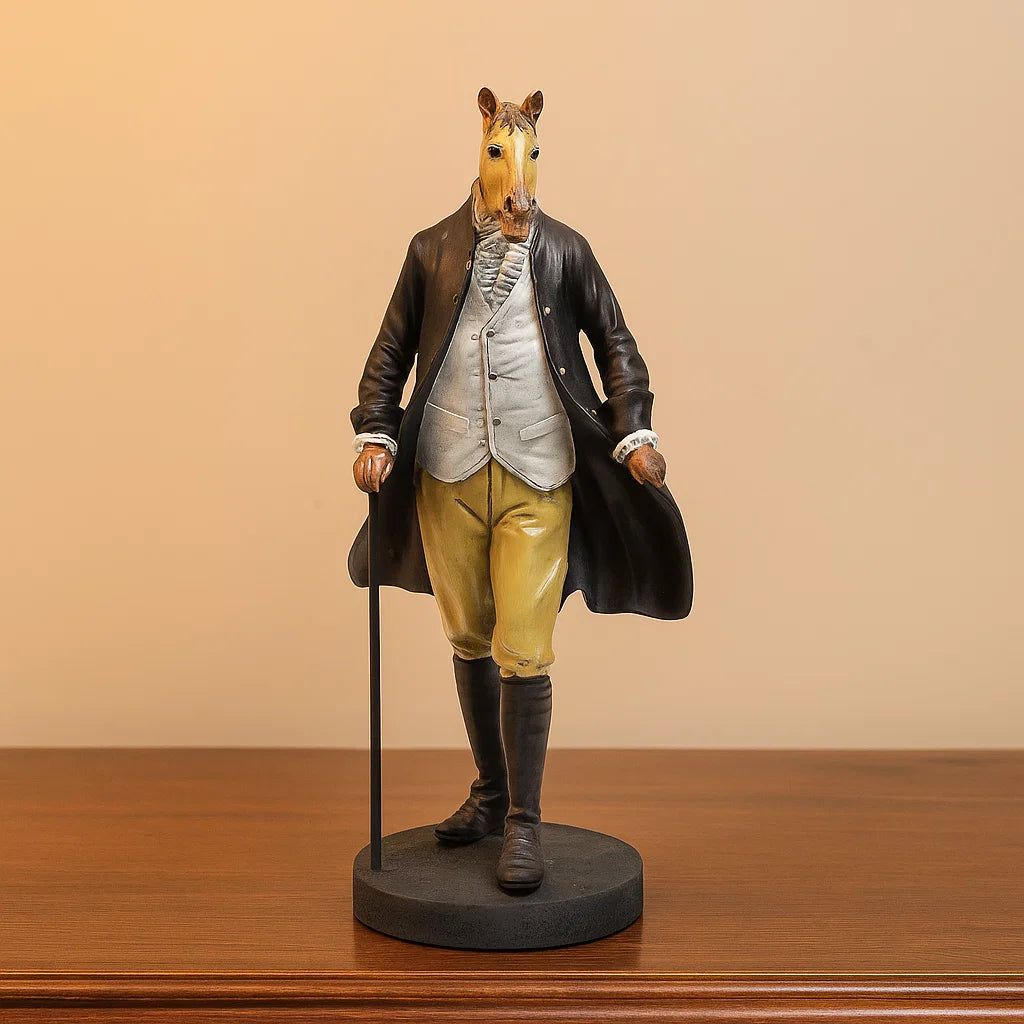 The Creature Fusion Art Piece blends human and animal forms, creating a striking and imaginative sculpture. With a human body and animal head, it evokes a sense of mystery and fantasy, making it a unique and bold addition to any art collection or space.
