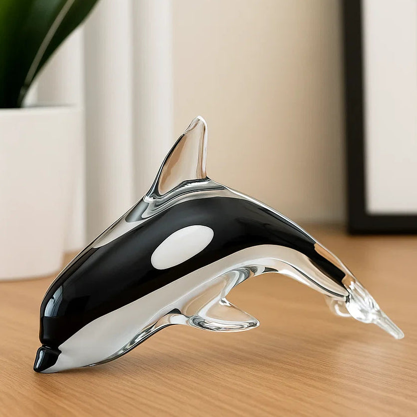 A beautifully crafted crystal dolphin figurine symbolizing harmony, freedom, and positivity. Its sparkling finish adds elegance to any space. Perfect for home décor, office desks, gifting, and creating a serene, ocean-inspired display.