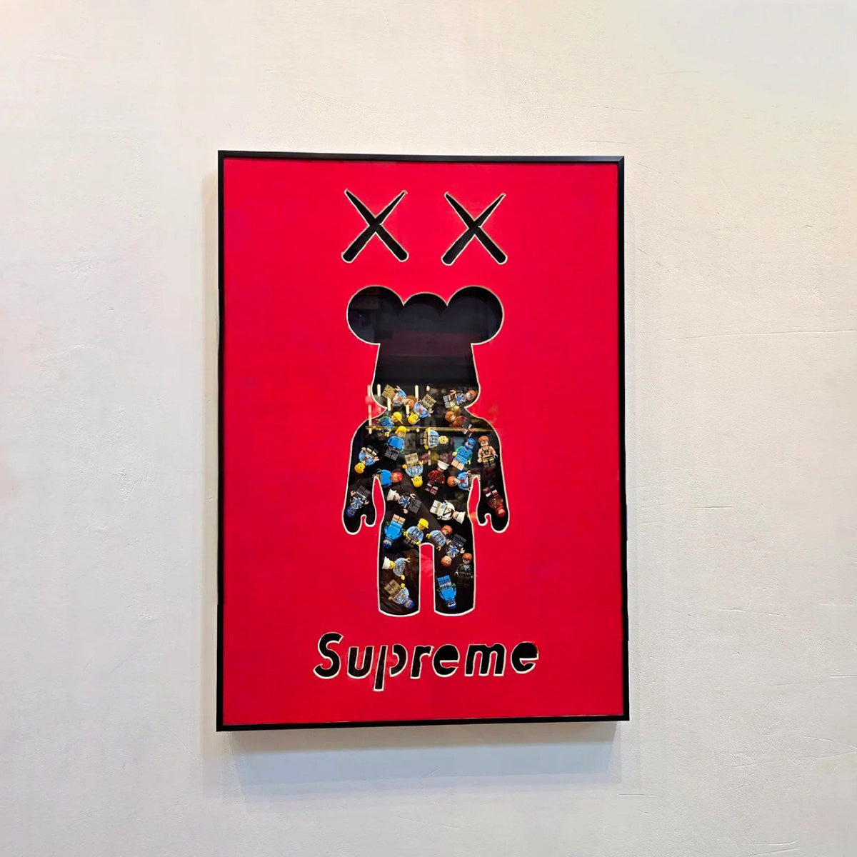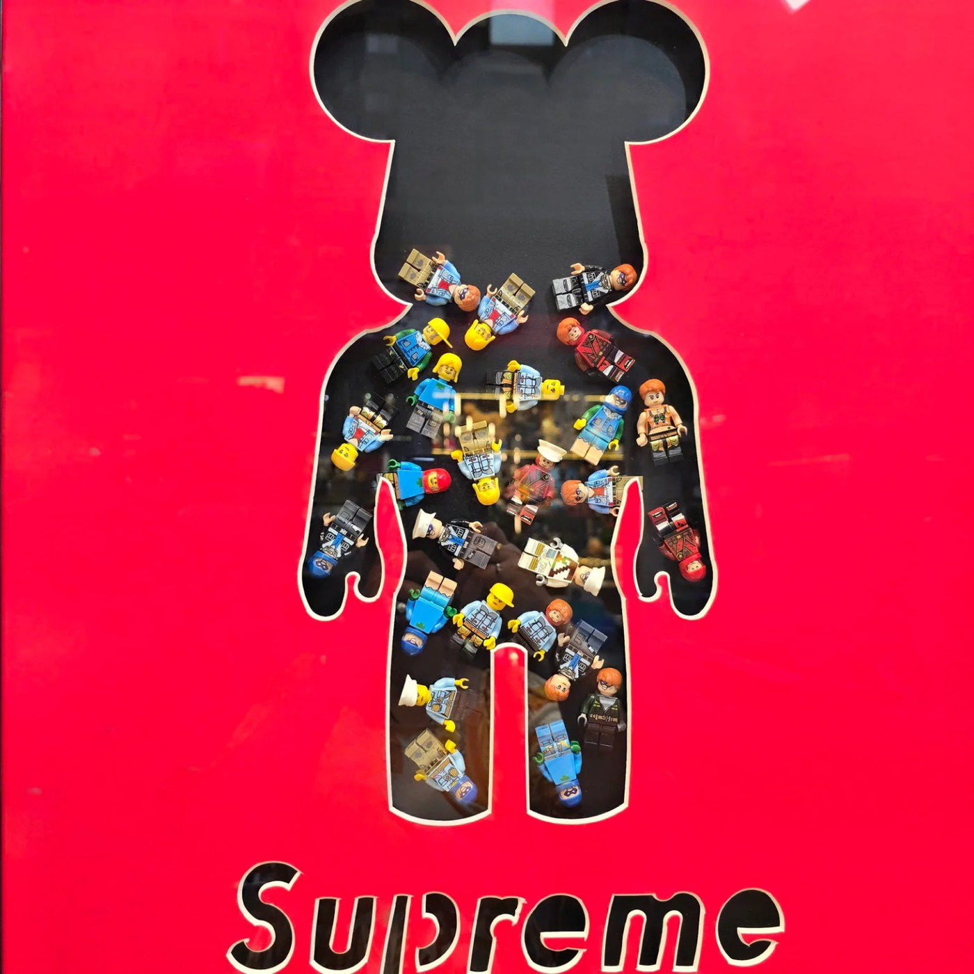 Supreme-Themed Lego Wall DecorA bold and stylish wall piece crafted with Lego elements inspired by the iconic Supreme aesthetic. Perfect for modern spaces, collectors, and stree...