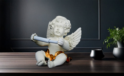 Made from premium-quality resin, the figure features intricate hand-painted accents, including a striking metallic gold drape that adds a luxurious finish. The angel is designed to hold a tissue roll gracefully between its hands, turning a simple necessity into an elegant display.