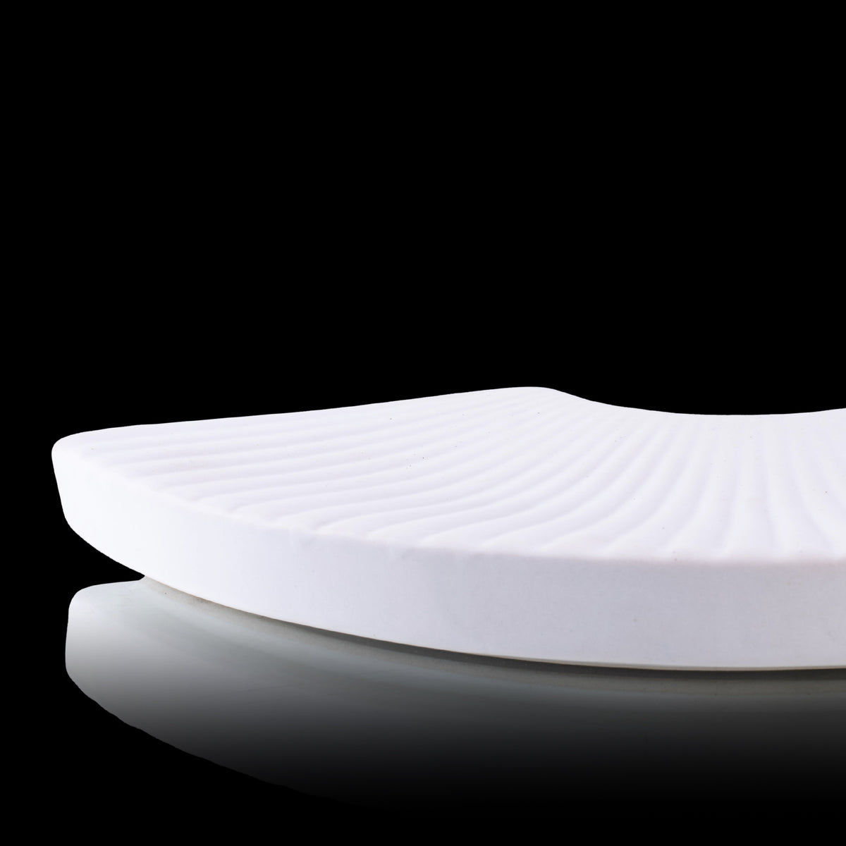 The ElegantCurve Platter features a sleek, curved design perfect for sushi or dim sum. Crafted with precision, it enhances presentation and dining experience, offering a stylish and functional serving solution.