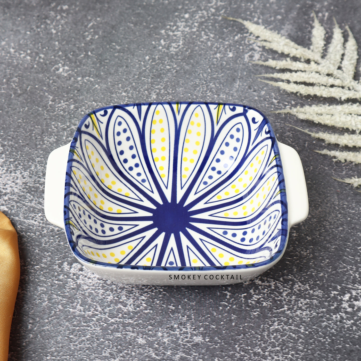 Introducing our Square Mandala Serving Platter Set, a fusion of elegance and utility. This set comprises two square-shaped platters, adorned with intricate mandala designs. Crafted meticulously, these platters are ideal for serving appetizers, desserts, or displaying decorative items. Elevate your dining experience with these exquisite pieces, perfect for both casual dining and formal gatherings. Add a touch of artistic flair to your table with this versatile and stylish set.