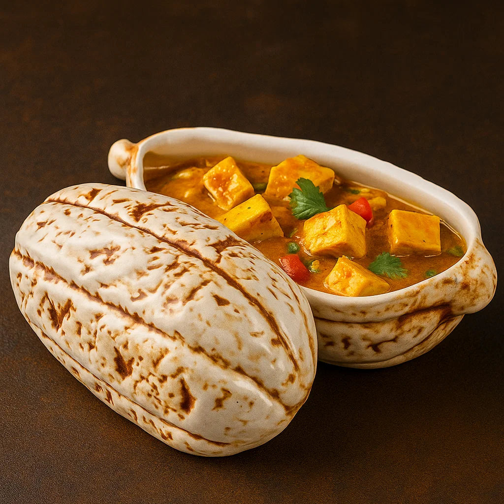 Handcrafted Cacao Shape Serving Platter, designed with artistic elegance, perfect for serving salads, small bites, or appetizers. Its unique cacao-inspired design adds charm to any table, making it ideal for casual dining or festive gatherings.
